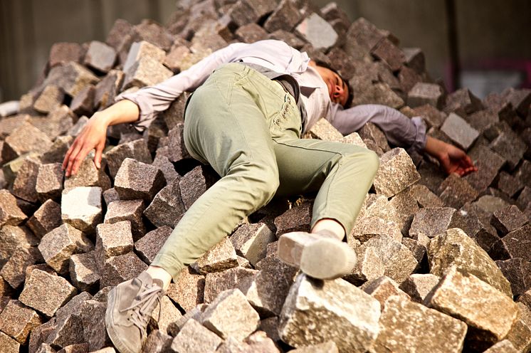 Ground. Bakom kulisserna-bild kortfilm våren 2020. Samarbete mellan Skånes Dansteater, Nicholas Wakeham, Anders Ortman. Dansare/koreografer: Laura Lohi, Marion Rastouil. I bild: Marion Rastouil.