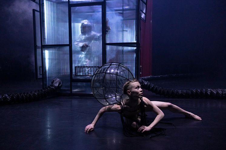in:finite i koreografi av Wubkje Kuindersma. Världspremiär på Skånes Dansteater 11 maj 2023. Dansare i bild: Fabrizio Di Franco, Emma Välimäki.