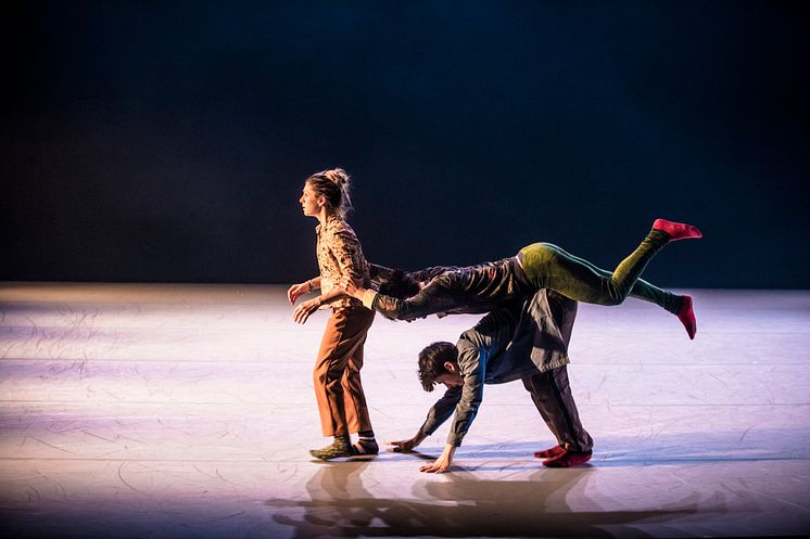 I bild: From Way Up There, koreografi: Sarah Bellugi Klima. Dansare i bild: Sarah Bellugi Klima, Riccardo Zandoná, Camille Marchadour. Verket ingår även i Hemlagat. Spelas i Karlskrona, Konserthusteatern 18/2. Lund, Lunds Stadsteater 28/2. Kristianstad, Kristianstad teater 9/3.