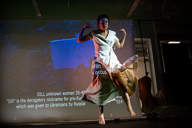 Our bodies are seeds. Koreograf/dansare: Viktoriia Khoroshylova. Premiär på Malmö Gallerihelg 23 sep 2022, ett samarbete mellan Skånes Dansteater och Mitt Möllan. Viktoriia Khoroshylova är en av två ukrainska danskonstnärer som har residens hos Skånes Dansteater under 2022. Residenset är ett samarbete mellan Skånes Dansteater, Region Skåne, SWAN och Artists at Risk.