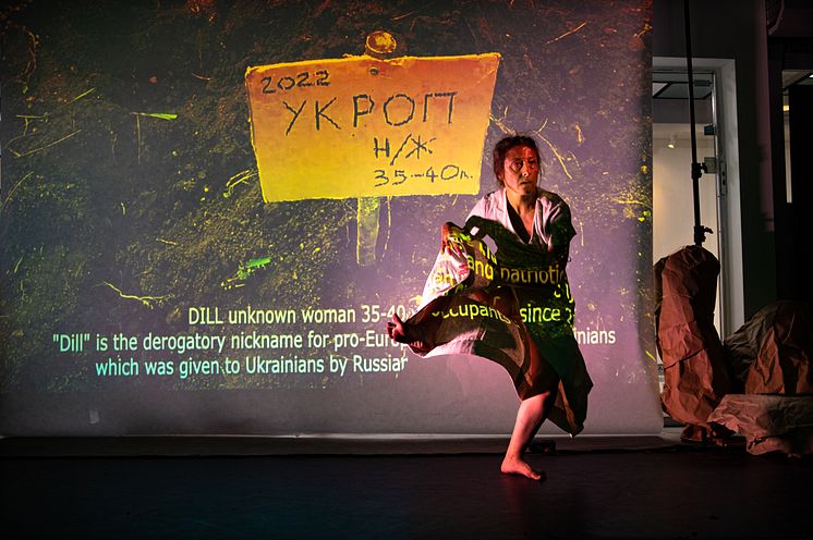 Our bodies are seeds. Koreograf/dansare: Viktoriia Khoroshylova. Premiär på Malmö Gallerihelg 23 sep 2022, ett samarbete mellan Skånes Dansteater och Mitt Möllan. Viktoriia Khoroshylova är en av två ukrainska danskonstnärer som har residens hos Skånes Dansteater under 2022. Residenset är ett samarbete mellan Skånes Dansteater, Region Skåne, SWAN och Artists at Risk.