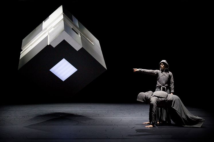 Från föreställningen Above & Below. Bilden är från föreställningens ena verk Sentinel av koreograf Antony Hamilton. I bild Sarah Bellugi Klima, Peter Jansson. Above & Below spelas på Skånes Dansteater: 18 mars – 16 april 2016. Turné: 22-23 mars Stockholm, Dansens hus. 6 april Karlskrona, Konserthusteatern. 9 april Växjö, Växjö Konserthus.