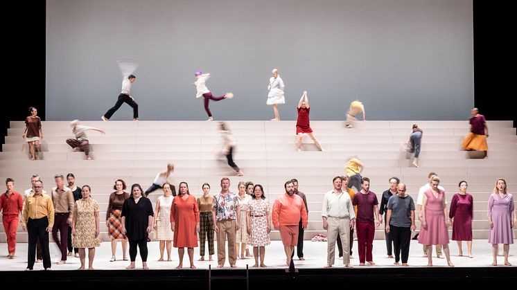 På scenen samsas dansare från Skånes Dansteater, gästdansare och Malmö Operakör. Tillsammans rör de sig och dansar till det mytomspunna verket som kom att bli Mozarts sista.